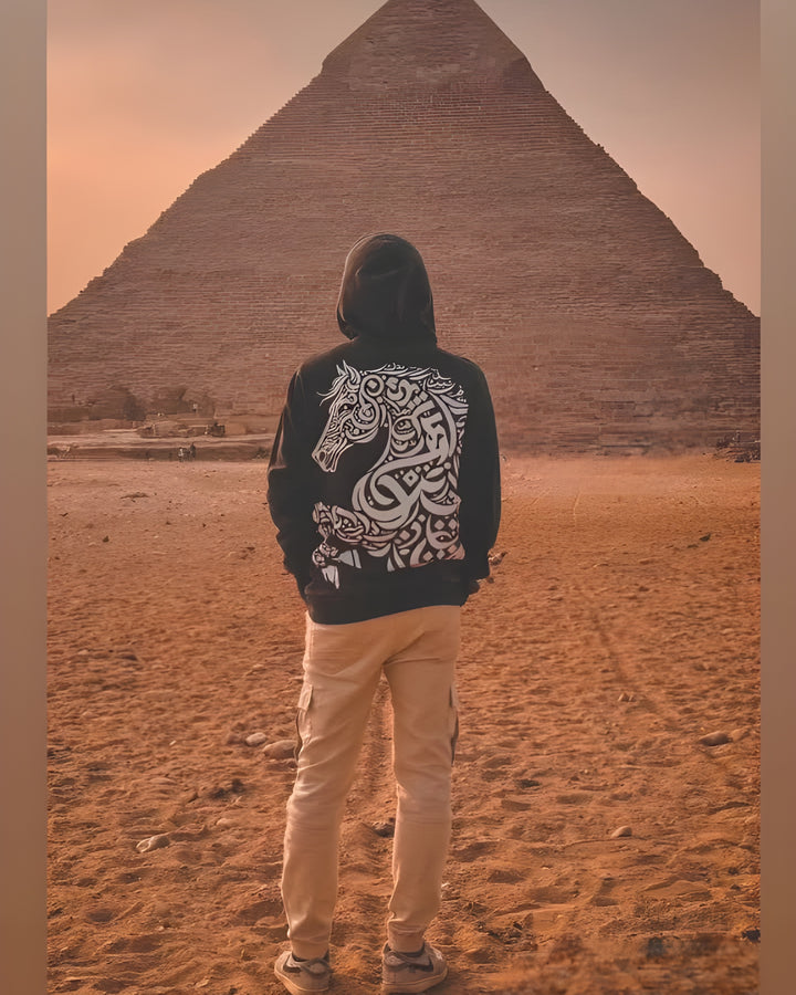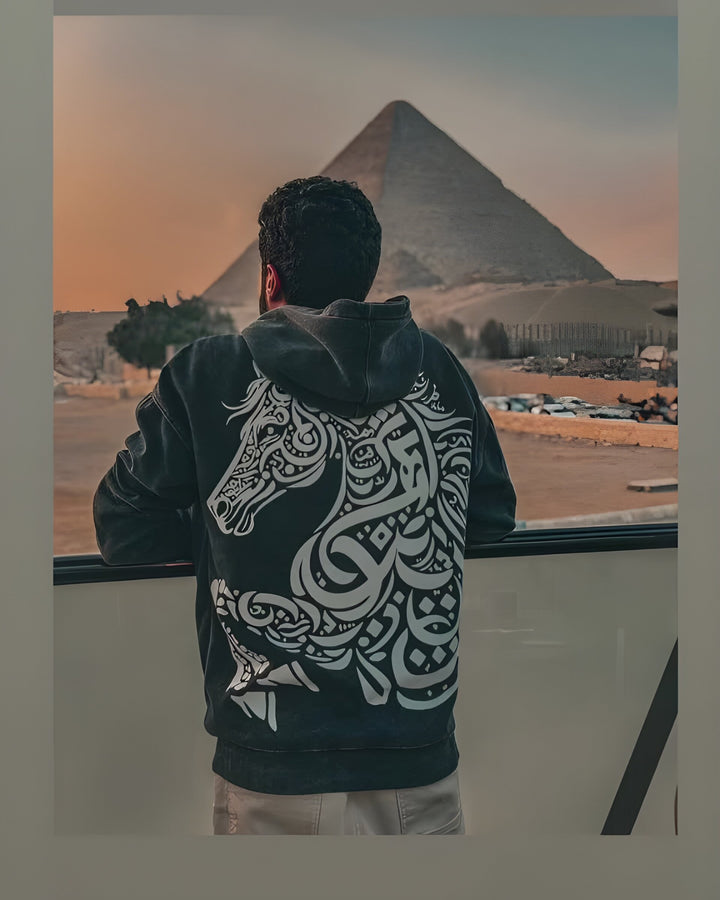 QADIM reimagines ancient Arabic letters and forgotten words through modern silhouettes. Every design begins with a symbol — a spirit. The eagle. The arrow. The asil horse. The dagger of Yemen. We don't just print art. We carry legacy.
